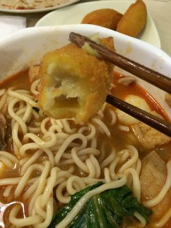 清新的小店 stellayxj等級42014-07-2310 瀏覽 關注 。蓝色的店招和蓝白色的主色调。吊顶上几何形状的蓝木条,垂下彩色的吊灯。不大的店堂,六张桌子,挤挤的。不过环境显得较为整洁。墙上贴满留言。竟然还有WIFI。半开放家庭式的小厨房,吃完后沾了一身的油烟味。店主是两小夫妻。男的在里面掌勺,女的在外面跑堂。中午时人较多,忙得不亦乐乎。特别是来了八个大叔大妈,一下子变得吵吵闹闹,温度骤升几度,很讨厌。十来种沙茶面和一些厦门特色点心。价格相对而说并不实惠。花枝丸沙茶面(16元):从点单到上面等了差不多十分钟。面里加了些面筋和生菜。面条并不多,很弹很滑不糊汤。汤头沙茶味不是很浓,带着辣和一些奶香,不过味道蛮香的。一共四个花枝丸,很有弹性,不过有着速冻食品的那种甜味。总体感觉还行,这样一碗面男生应该吃不饱。…查看更多以上食評乃用戶個人意見 , 並不代表OpenRice之觀點。讚好分享清新的小店 鼓浪屿的风 https://s.openrice.com/KtbT100Uh4B00檢舉 張貼 評分4味道3環境3服務3衛生3抵食推介美食花枝丸沙茶面用餐途徑堂食