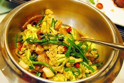 来到这个地方,我还是很熟滴,之前跟老板来过,这里还是川菜馆。现在变成了一家鲁菜馆。不知道里面的菜式怎么样呢。小二的祖籍是山东烟台,所以对鲁菜那是相当的感兴趣,这次一定要好好的尝尝了。干锅有机花菜半荤半素的菜品。味道很好,菜花烧的很入味,麻辣的味道也恰到好处。三鲜水饺,我们的主食之一。海三鲜是海参、海肠、海虾。从没试过这么奢侈,把三种海鲜做成馅包饺子。配的菜是韭菜,非常好,韭菜提鲜去腥,让三种海鲜的鲜味充分发挥了。海鲜打卤面卤的内容很丰富,倒入面里,简直是惊艳呀。那鲜美的滋味自不必提说了,但看那丰富的材料便可知道了。胶白菜炒虾白菜炒虾是听起来普通的菜式呀,尤其白菜,是普通的食材嘛,能精彩到哪去呢。后来才知道,这个白菜是最有名的胶东白菜,清甜可口。虾也是肉质肥厚的大虾呀。胶东拌海藻这道菜造型很漂亮。口感Q弹,里面富含胶质,应该有美容养颜的作用。九转大肠鲁菜的代表了。小二不太喜欢动物内脏的食品,觉得腥气。但这道名菜,不能不尝。吃了一块,外面是脆的,里面是嫩的,一点儿也不腥气,是小二喜欢的咸鲜口儿还带点甜的那种。不愧是名菜呀。凉拌马尾沟芹菜马家沟芹菜是很鲜嫩的,据说掉地上能摔八瓣,不知道是不是真的。夹了一块到盘子里。颜色很浅,不象有味道的样子。吃到嘴里,芹菜味儿很浓。平时吃的菜场买的芹菜都是水味儿的,以至于都快忘了芹菜到底啥味儿了,今天终于唤醒味蕾的记忆了。齐鲁坛子肉夹了一块到盘子里,很肥的说,可又不可能再放回去,斗胆吃下去吧。味道很好呀,肥的不腻,瘦的不柴,滋味也足。齐韵千滚豆腐这个菜初尝味道平平呢。可是把汤和豆腐泡在一起吃下去,那味道实在是鲜呀。总体来说,这个餐馆不错,饭菜口味好,环境也很高档。适合家人聚会,朋友聚会,商务宴请。是个很不错的菜馆。…查看更多