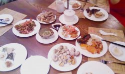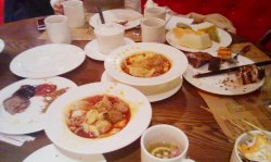 龙腾四海 不建议去这个自助吧 在兴隆大奥莱呜呜喳喳开业的时候就很关注当时对内部营业 看他们吃的挺好当然明知道他们是托 可是心还是好痒痒的于是 在等了几个月来着 终于开了特价 78一位吧 这个价位 吃吃自选大杂烩自助其实也还行 就是适合人多闹一闹大店都不咋怕浪费 进店给我的感觉就是兴隆聪慧了 知道把美食广场改革了 这整个一个美食广场大合集的自助餐么 那小区分的 可像可像档口了什么三文鱼哈根达斯啥的都是需要加钱的我感觉这个价位三文鱼还要加钱 兴隆你怎么不抠死海产类的也就几种贝壳 马蹄贝 白蚬子 黄蚬子 花蚬子10块钱 就能3斤的玩意儿们啊 诶然后蚬子还都是沙子哦对 那个寿司还都挺好吃的 虽然都是紫菜包饭类别的蒸菜啥的挺好吃的 点心区没有虾饺很遗憾 烧麦太丸子了不算好吃的羊肉串都要排队 而且一次三串 太行了扇贝其实也不错 一次 俩 可以循环排如果长得比较讨喜 可以去大妈那儿卖卖萌 能多赏几个甜点里只有泥巴蛋糕比较给力 很香浓 其他不行啊冰淇淋很香精 哦哦哦 还有花果茶区 这个 如果支持打包留作纪念就好了 花果茶这个真是很罕见 还非常全乎呢哎 就是挺大的 挺适合闹一闹的 吃个实惠是不可能了也许新出的团购能不错?木有欲望思密达