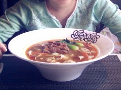 1001原汁牛肉面的分店逐步开多起来了嘛,他们家面的碗比较有特色,很大很大,底小面大,开口比头还大,碗边还有他们家独有的花logo,挺漂亮的,让人看了就不会忘记这个是1001原汁牛肉面。价格小贵,不过每次过去都会有优惠享受,这样算下来就还行了吧。要了手工宽面的那种,辣度为微辣,面蛮好吃的,滑滑的,不烂,牛肉不多,煮的挺烂的,汤头灰常鲜,酱油味道放的刚刚好,蔬菜不错,就是少了写,胡萝卜也有一块。查看更多