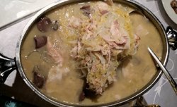 这家真是被点评忽悠去的,以为会美味成什么样呢,点了小鸡炖蘑菇,这个上来觉得这的菜量真心不大,鸡肉好少啊,味道还可以,只是普通的小柴鸡,没有惊艳的感觉,招牌锅包肉,这个上来时觉得这下点多了,很大一份,外面裹的厚厚的一层淀粉,虽然很酥脆,但淀粉过于厚实了,影响了肉本身的口感,好在调汁不错,等到酸菜那道菜上来,我来根本就吃不动了,酸菜这个忘了菜名,里面有酸菜,五花肉,大骨头怎么五的,酸菜不酸,让人失望的正宗东北酸菜。免费赠的玉米孛孛挺好吃,有淡淡的玉米香,甜甜的,老公说就是发糕,我喜欢,总体感觉他家口味偏淡,和一般的东北菜餐厅重盐的特点相比还是挺不一样的,高端东北菜嘛,但是味道并不很出色。查看更多