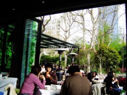中午和朋友相约小逛了一下后,朋友选择了来这里下午茶WAITER把我们安排在了酒吧区域,有点狭小的长条空间沙发还是挺舒服得,紧紧埃着落地窗,可以看到襄阳公园,不过对于冬天也什么特别的风景晚上华灯亮起的时候倒是有一些小惊艳的【下午茶套餐】68RMB/人,双层的,水果和点心味道还行吧,品种还算丰富,茶水果汁咖啡任选只是我们晚到的一个朋友加了一个空杯,买单时候才发现原来要10RMBWAITER也没有事先告知,有点小小不爽室外的区域很不错,春天或者秋天在这边坐着应该蛮惬意的查看更多