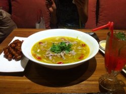 这次和小伙伴们去70后饭吧聚餐,觉得酸汤肥牛还有王老汉臭豆腐蛮好吃的,前者汤汁的味道鲜鲜的同时还带有一些的酸辣味道,喝着感觉也蛮开胃的,里头的肥牛肉肥瘦相间口感嫩嫩额,吃起来肥而不腻。王老汉臭豆腐外层炸得酥香脆口,里面质感嫩嫩的,边上配有两种酱汁,我觉得辣味的更好吃一些,能很好突显出臭豆腐的香味。查看更多