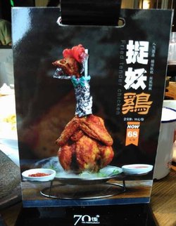 吃过很多次的70后饭吧了,什么都好就是等位太累了,捉妖鸡是最近才出的新品呢,一直鸡真的超级大的,我们当时三个人都觉得有点hold不住呀,味道是相当的香,一股烤鸡的香味四溢,鸡肉很嫩哦,鸡皮这里稍微会有点油腻,鸡肉真的特别结实,一个鸡腿吃完就觉得饱了。查看更多
