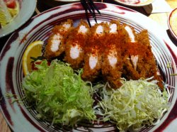 炸猪排 enenra等級42013-04-1014 瀏覽 關注 和朋友约在九六广场吃饭,九六广场的东西真心很多可是说实在话的生意好的也没有几家,需要排队的也不多这家幸福牧场在烤肉达人的旁边,旁边的烤肉达人到时零星的排着几个人,但是这家店没有排队而且基本上也没有满员,我有数过店内差不多4人桌有30张左右,店里是原木风格的装修,进门前给了张优惠券点套餐免费送饮料和甜点,据说以前是不送的,估计是为了增加生意吧。一进门桌上就摆着一小碟芝麻和两瓶酱料,服务员会主动帮你倒好茶水。点了套餐,套餐是48-88不等的,单纯式的炸猪排差不多都是48的价位,如果猪排里面裹着芝士啊 虾啊那些的价格会贵些,我还是喜欢单纯的所以点了辣味猪排。等东西的时候我就开始磨芝麻,先捣鼓几下等碎了些在慢慢的碾,然后芝麻的香味一点点出来,挺好玩的。2分钟不到的时间前菜已经上来了,以前菜量来说还是不错的,三篇腌萝卜,一片白色的 一片带点淡粉红的应该都是白萝卜,酸酸脆脆的很开胃。不爱吃胡萝卜所以没有尝试,豆腐很嫩很爽口,那个绿色的菜菜也很好吃,腌制的正好口味没有过重,木鱼花的味道也很棒。色拉是可以四选一的,因为我不爱吃番茄所以选了唯一没有番茄的杏鲍菇色拉,好特别应该来说我觉得这个应该不能算色拉,只能算腌制类食物。杏鲍菇腌制的很入味,辣辣的,咬下去有菌菇类特有的爽口感,配上海苔丝,不管从色泽还是味道都很不错。辣味猪排T T我不得不说他们家的量好大啊,猪排和盘子之间架了个小铁架,猪排外皮有点点厚,炸的很透肉很厚实,我觉得有点偏干,因为是辣味的 上面撒了辣粉,我觉得可能是七味粉之类的。在芝麻上倒上酱料,蘸一下,酱料的味道还是不错的,尤其是配上了芝麻,味道真心不错。就是吃到一半的时候战斗力已经下降了,吃完后站起来我都觉得想吐了,深刻后悔应该两个人点一份,女生真的吃不了那么多,生菜丝上也可以倒上酱料吃起来好爽口。啊忘记说牛尾汤了,汤也是四选一的,我喜欢牛尾汤所以就点了这个,其他的味增汤蛤蜊汤看上去也都不错。汤上来的时候还是很烫的,很和我口味,不喜欢温的汤。汤的味道不错,里面放了很多黑胡椒,配上很烫的汤,胡椒味道更重。赞甜品很可爱,我点了盆栽奶酪。奶酪上撒上可可粉再配上薄荷叶感觉真的很像盆栽,奶酪的奶味很重而且不是很甜,配上可可粉好吃。朋友点了可可冻感觉一般所以我还是推荐盆栽奶酪。然后说说他们家的饮料,饮料真心一般,还好我点了一杯是酸酸的,如果是甜的彻底喝不下了。两个套餐一共96元好划算啊,回来的找零还有一个袋袋装,很贴心。相对于性价比来说绝对划算的推荐大家来吃。哦哦,还有他们家的米饭也是很不错的。店里的小哥还都蛮帅的,倒水也很勤快,是不是会来看上一眼。唯一就是我吃好整个套餐不舒服到第二天,因为实在太撑量实在太大了。我高估了自己的食量,其实应该两个人分一个套餐,不过他们家单点的东西实在没有什么。…查看更多+ 4以上食評乃用戶個人意見 , 並不代表OpenRice之觀點。讚好分享炸猪排 721幸福牧场 https://s.openrice.com/KtbT10090q500檢舉 裙带菜 按这个价格确实还是很实惠的 看介绍味道也还行 值得去试试啊 2013-04-11 回覆 張貼 評分4味道4環境4服務4衛生4抵食推介美食正前菜杏鲍菇色拉辣味猪排牛尾汤盆栽奶酪人均消費¥48