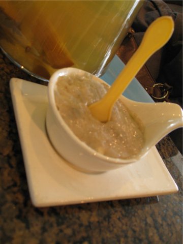 事先在DP上打印了优惠券,满100减28,不过锅底蘸酱都不算在里面的,DP卡的积分也不包括锅底、酒饮、蘸酱、特惠等,少了不少积分啊!蘸酱蛮多的,不过酱料台边上没有放小碟子,只能用自己桌上的盘子来装调料,这样就不能试很多品种了,不过不浪费。没有免费小食拿,稍微有点不开心,如果像豆捞坊一样给点小食吃吃多好啊~我们分别点了菌菇锅底、麻辣锅底、有肉排的锅底,还是觉得菌菇锅底比较好,内容蛮多的,菇类都不用再另点了。餐前每人送一小杯桑葚醋汁,酸酸甜甜的很好喝,就是杯子小了点,估计也就比西提牛排的百香果酪的杯子大了那么一点点,一个朋友说不喝,厚厚,那我就不客气啦,喝了2杯还觉得意犹未尽啊~餐后甜点是加了冰淇淋的糯米粥,大家都觉得很好吃哦~点了牛羊肉拼盘,反正我是个洋盘,也分不出牛羊肉的区别,味道也就那样吧。冰鲜鹅肉真的很不错,片得很薄,稍微涮一下就能吃了,即使没及时捞出来也没关系,久煮不老,真的很赞,就是量少了点诺,下面铺了一大堆萝卜丝……鲜虾凤尾饺也很赞的,外面的饺子皮绿油油的,稍微厚了点(估计要涮的,皮不能做得太薄吧),包裹着满满的虾肉,灵哦!还点了炸豆皮、笋、冻豆腐、山药、菠菜……量还是蛮多的,我们三个人都吃撑了,下次再去可以试试芝士牛肉丸和滑类东东。吃完饭后填了张调查问卷,据说能抽奖(当然不指望会中啦),偶们看中的是填完调查表后交到服务台,收银员会把边上的优惠券盖个章,这样下次来消费就可以满100抵用38元啦~希望以后能够全部消费(包括锅底蘸酱等)能够全部积分,这样就更合算啦^-^…查看更多