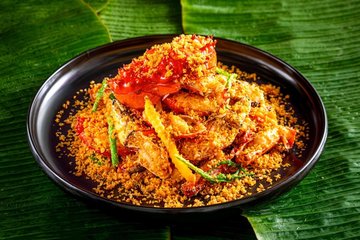 三叔烤大羅蝦 / 椒鹽九肚魚 / 百香果蒸中鮑魚 / 避風塘炒石岩蟹 / 海皇湯 / 無花果雪梨湯