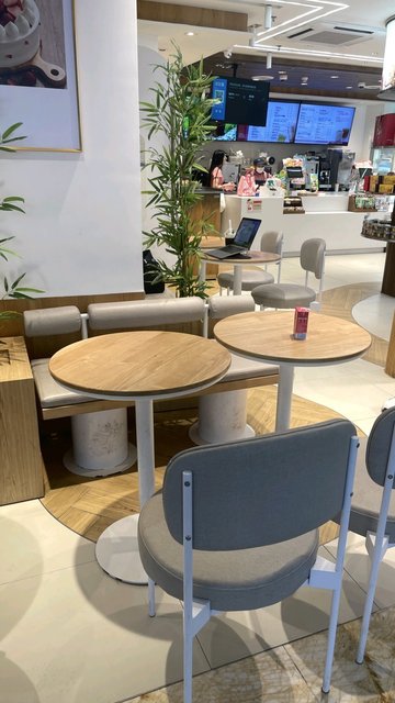 一大早去了家乐福,就在85度买了一个面包,我比较喜欢吃白色恋人,不仅美味,价格也比较便宜。9点多陆续新鲜烤制的面包出炉了,看到凯撒大帝和白色恋人都有很多,85度的饮料都涨价了,正好自己带了牛奶,一个面包一杯牛奶当早餐刚刚好。下个月宝贝生日,看了85度的生日蛋糕,很不错,下个月就订一个。天利店的生意很好,买单的服务员好像一直都没有休息过。