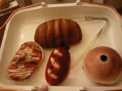 早就知道他家,一直都想试试,刚好广发的信用卡可以用积分换现金券,于是换了两张~~~经常路过双井这家,于是就跑来这里买面包~~~、开始还以为他家的面包很贵呢,结果发现价格比其他品牌的面包房要便宜一些,呵呵,不错~~~起士卷,5元,味道一般吧,倒是不贵~~~红豆千层堡,5元,这个也感觉一般吧~~~奶酥金砖,7元,这个不错,很好吃的说~~~大阪烧,7.2元,这个好吃,就是味道冲了点,都是照烧酱的味道~~~摩卡咖啡,9.5元,个头很大,里面还有核桃仁,还可以吧~~~蓝莓乳酪,6元,还行吧,倒不是很腻~~~夏威夷之恋,5.5元,还可以,味道不错~~~匈牙利培根,5.5元,就是个头小了点,挺好吃的~~~总的来说,他家的面包味道还行,就是大家推荐的那几种,总是买不到,也不知道每天都做多少啊。另外,他家还不提供面包袋~~~查看更多