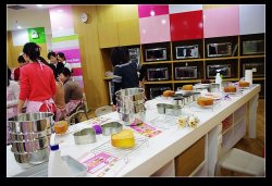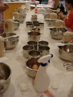 新鲜出炉热气腾腾,外脆里嫩的海绵蛋糕出炉哉话不多说,先来张照片一人份的材料:要有2个鸡蛋,白糖70G,面粉70G,牛奶一大匙,还要一点无盐黄油(这个是涂在模具上的)拿出来是冰的哦~~~怕黄油化了!工具:搅拌机,烤箱,模具,刮板(就是图中盆里的那个白色的)ABC料理教室分2种老师哦~橘色围兜和蓝色围兜。橘色围兜的是本地的老师,蓝色围兜是资深老师(教我们的月影老师是多年在日本的中国人)ABC料理教室又一大特点是男士勿入!嘿嘿,和姐妹淘一起去的好地方啊!除了K歌,闺蜜们可以去料理教室装装贤惠,学习下怎样做蛋糕面包饭PIZZA等等。在日本每个女孩都会去上家政课和料理课的,家庭主妇必备技能啊!ABC料理教室环境很好,开放式的大厨房,有好多烤箱,一进去就觉得好热,建议去的姐妹穿少点(烤箱开起来就会很热)…查看更多