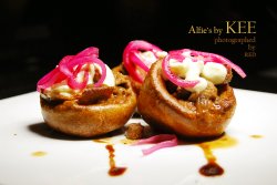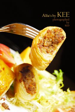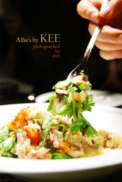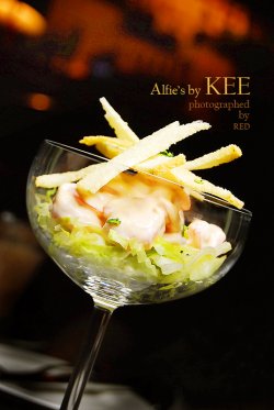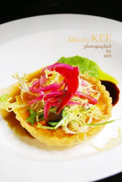 某日,与几位吃货朋友相约’Alfie’s by KEE’,美美地享用了一顿正宗的英式大餐,算起来,俺亦是第一次尝试,印象大好之余,对其亦有了进一步的认识。正所谓“小瘾瘾于山,大瘾瘾于市”,它家便是如此,隐匿在南京路恒隆广场DUNHILL的楼下,若非好友的推荐,我还真不知那里竟然有一家道地的英式餐厅,OUT勒,呵呵!沿着DUNHILL店内的木梯循循而下,印入眼前的就是颇具神秘几分色彩的’Alfie’s by KEE’。店内的装修风格简约而明快,一如英伦绅士般的含蓄优雅,在内用餐,绝对是另一种意境的升华。★前菜★鲜虾色拉与鸡肉色拉:鲜虾色拉装在一只透明的高脚杯内,有如一件艺术品,有大虾仁、生菜、面包干等食材,看上去就好惹眼的说,口感更是清新爽脆,颇受大家青睐;而鸡肉色拉则口感更厚重些,除了有鸡肉丁外,另配有香糯可口的香米与紫米,不仅养眼,还很管饱哦!★主食★点了鸡肉沙拉配杂谷、烤牛肉配布丁、墨西哥鸡肉饼、英式炸鱼柳、猪肉肠配薯泥,以及猪肉肠、芝士洋葱、番茄苹果及黑面包,不同于传统的美式汉堡沙拉,英式的更为健康、清淡、少油,且每一道菜亦倾注了厨师的良苦用心,口感亦相当道地。★甜品点心★香蕉腊肉苹果饺:大厨很有创意,竟然将香蕉、腊肉及苹果三种食材的混合在一起做馅心,代替了惯用的鲜肉,可谓“中式锅贴”的改良版,呵呵!烟熏三文鱼挞配奶油:又是一道创意菜,烟熏三文鱼肉肉颇具质感,鲜嫩肥美,底下的挞饼脆香可口,撒上薄荷叶,配以鲜奶油、青红甜椒粒,蘸以青豆泥食之,滋味妙不可言。英式太妃糖馅饼:淡奶油与太妃糖及各色坚果的完美组合,最上面一层淡奶油,轻飘细腻,入口即化,底下一层,则是MIXED太妃糖及坚果粒,口感由轻淡逐渐转向浓郁,甜而不腻,丰富的层次感令人惊喜连连。杂莓大都会:鲜乳酪及奶油发泡而成,第一口就能品尝到丝滑般香浓的乳酪散发出的浓郁气息,混合着乳酪的香醇与蔓越莓及草莓果酱的酸甜,带来不一样的清新口感。总之:环境优雅恬静,设计别具匠心,餐厅除了供应西餐外,另有各色红酒售卖;服务细致周到,亲切有礼,帅气的英国主厨中文说得狠溜,呵呵!菜品的口感还不错,西餐做得蛮道地的,尤其喜欢它家的甜品,谁叫我是超级“甜品控”呀,嘿嘿!查看更多