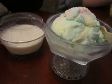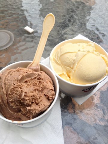 之前有团购活动 搜了这店的评价口味不错的 于是团了个代金券去吃 貌似是15团的40的券 最近搜索看到这店还是有活动的 是些配好的团餐 也满划算的 东西蛮多的 自己稍微加了点钱 买了两个单球 一个优雅香草 一个巧克力 本人想点异域焦糖的其实 TT 后来BF点了巧克力味优雅香草感觉口敢的确很赞 与平时吃到的香草味还是略有区别的 但是巧克力的就没那么惊艳了 但也不是说不好吃 就是感觉和平时吃到的巧克力味道差不多日月光不熟 之前还是去了半天才找到 原来是外面露天的 店面不算大 店外还有寄 个露天位