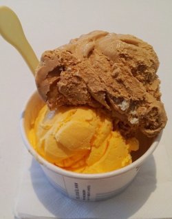 美团团购的券,20元的团8.8元,团了两张,单球补3元.双球差2元.店里环境蛮好的,有WIFI可以上网,电视里有在放艾薇儿的演唱会.选了芒果和焦糖的双球,量很足,焦糖的味道比芒果的要浓郁.冰激凌都不是很甜,吃多了也不会觉得腻,就是融化得比较快.而且给我的纸盒子底下有缝隙吃到最后都漏出来了,还好是坐着吃完的.查看更多