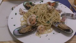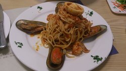 闺蜜之前做的功课,说大众点评评价很不错,意大利大厨的名号真勾人啊,强烈要求去吃吃看。 说实话对华府天地印象真不好,怎么那么蹩脚啊,那么不好找啊,每次都累个半死才到,这次也是。。。 服务员很厚道,开店八折,问了一下意面够不够吃,说是足够的。 我要了蛤蜊蒜蓉意粉,闺蜜要的#番茄汁海鲜意粉# ,上来果然好大量啊!! 说实话还是番茄的好吃,味道比较浓重,香料的味道真足,蛤蜊的有点腥,尤其是店里冷,吃吃就凉了,感觉有点腻腻的,不太好 要了炸鱿鱼吧,好大一条鱿鱼,很好吃,火候刚刚好,番茄和沙拉两种酱 蔬菜沙拉还不错,挺清淡的,可以自己加油和醋 要了一杯柠檬茶,恩,柠檬茶的味道。。 整体还不错,量足,味道也还好,价钱也不贵,打八折之后,人均70…查看更多