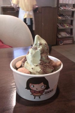 冰淇淋看在这里,看上去很有档次呢。店里有舒适的沙发,悦耳的音乐,还能上WIFI,冰淇淋号称选料用酸奶,健康营养,配料选择的种类很多,看得眼花缭乱。点了个抹茶口味的,外加杏仁,不过,冰碴子吃到不少,影响了冰淇淋的口感了。查看更多