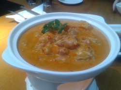 双休和同学小聚,来到了《满金香》,交通还是较方便的,21路坐到陕西北路,下来没走几步就到了,开在北京西路上,真是闹中取静。 《环境》进门是茶餐厅的部局,我们在里面的玻璃房就餐,又是一道不同的风景线。 《菜品》咖喱牛腩(58元)装盘较别致,牛腩很酥而入味,咖喱味奶香浓郁,非常美味,赞一记; 杏仁金丝虾(98元)很有特色的一道菜,虾个头大而肉有弹性,杏仁也很香; 马来风光(32元)就是空心菜,很嫩很新鲜; 马来炒面(38元)里面有是虾仁、番茄等配菜,口味不错;总结:较有特色的新加坡菜,值得一尝。…查看更多