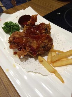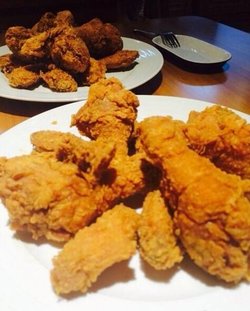也是一家挺好吃的炸鸡店,价格小贵但是炸鸡味道挺棒的,有不同的酱,韩式彩虹酱是那种类似番茄味道的吃着酸甜口略微偏甜一点。炸鸡,鸡翅,鸡腿,无骨的鸡爪子都有,现炸的,很香酥查看更多