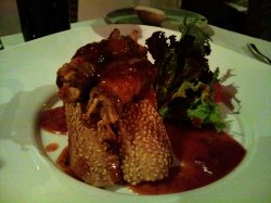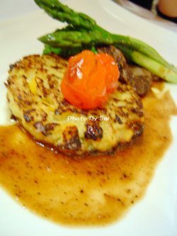 其实之前早就听说这家的下午茶和甜点都老灵光的,一直想去的。没想到后来看到说万圣节那天他们家所有食物对折,这一下再不去岂不是对不起了自己啦。于是早早地定好位子,约了一位朋友一起去。 我朋友比我先到,拿了一张单子说服务员说今天只提供这张单子上的套餐,我一看要298一位,而且东西也不是我很想吃的,那没意思来,折下来也要150一个人,又不是很灵的。于是我拉了朋友就想走。这个时候大概那个服务员看看苗头不对,估计前面已经走掉几批客人了,于是立马改口说,再等等让老板决定。这样一等就变成说原菜单上所有单点的食物都可以点,而且全部对折 哈哈,想想这个还不错。于是开点。其实之前我已经在DP上做好功课了,朋友的菜也是我帮他点的。我们点了berry salad 、水牛芝士披萨,主菜点了烤海鱸和香酥鸭腿,甜品点了提拉米苏和巧克力杯,一份海鲜汤一份蘑菇汤。 先上了餐前面包,这是送的。我觉得满好吃厄,可以搭配橄榄泥或是芝士,味道蛮正宗的。 柏瑞色拉(55元)服务员介绍说是这里的招牌色拉,点了之后有点后悔啊,其实就是简单的一盘蔬菜色拉,不过有很多平时很少见的菜加上它的调料比较特别,满爽口的。其实打了对折之后还好啦,如果是原价真的感到有点不值。 水牛芝士比萨(60元)这个赞的,超级赞,是除了甜品之外让我觉得最好吃的。薄薄脆脆的底配上浓郁的芝士,芝士真的可以拖得很长,老香厄,拿在手上咬一口还有汁水滴下来,真是灵啊。 两个汤一般。我很少感觉西餐的汤味美的,大概是我喝不惯吧。我吃来吃去相对还是喜欢大众化的罗宋汤。而这里的汤,蘑菇汤感觉太淡,海鲜汤有点猩。 其实吃完这些已经感到有点饱了,这时主菜才上来。烤海鱸有点腥,味道一般,但是配菜及其丰富。香酥鸭腿也是,没有感觉到特别好吃,但是配菜量多而且味道不错。 主菜终于也吃完了,应该说是给我硬塞下去的。但其实这时候重头戏才真正开场。甜品上来啦。提拉米苏和巧克力杯看上去就像两个精美的工艺品。提拉米苏装在一个超大的咖啡杯里,量哈大,香甜而又不腻。巧克力杯么,轻轻扒开它的表层,里面是热热的巧克力酱,配上旁边的冰淇淋,真是冰与火的交融。初尝第一口时真是惊艳啊,之后多吃点就感觉过甜了,有点腻。 最后买单417元,打个对折划算啊,要是下次还有这样的活动,一定会再来。这里的环境很不错,优雅安静,甜品肯定会讨女孩子欢心的,蛮适合情侣小坐。…查看更多