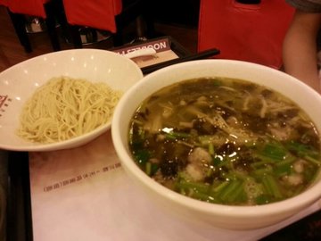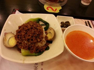 早前看到星尚推荐过这家,所以就去尝试了下,果然又被坑了~卤肉饭:价格便宜,量不大,味道还不错,卤肉很香,送番茄汤和咸菜,咸菜味道很特别。酸汤肥牛金针菇面:上来一大碗汤以及一碗干面,看不懂了,于是就把面加入了汤中,面是鸡蛋细面,肥牛很少,汤头不是很好喝。