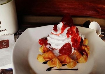 环境温馨,小资。华夫饼的种类很多,喜欢草莓酸奶松饼,饼身松软,上面的奶油味很浓,造型美观,但不甜,口感细腻。夏天吃他家的刨冰感觉很不错,用料丰富,口感细腻,冰爽。
