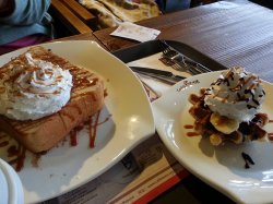 Caffe Bene的店面环境很不错,很有文艺小资的情调,服务态度也很热情,价格比较的贵。华夫饼口感很好,甜甜的,喜欢香蕉味道的,很清甜。加浓拿铁有着浓浓的咖啡味道,细细品尝口感很香醇丝滑,带着点苦苦的味道,我很喜欢。查看更多