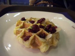 布置的很漂亮的店,是来自韩国的连锁店接连发现了很多家淘淘巷门口,鼓楼大转盘都有点了一个蜂蜜坚果华夫饼,28块。端上来嘛就是很小的一块华夫饼上面倒是有很多的蔓越莓果干 和一些杏仁片蔓越莓果干比较可怕,太甜了,吃了一粒就被齁到了····华夫饼是热的,口感就是正常出品的松饼味道,谈不上惊艳查看更多