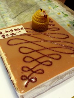 点评团团购去的....想说之前还担心1.5磅的蛋糕不够我们5人吃....没想到是那么的夯实...卖相好看~ 味道也好吃~浓浓的巧克力味道,蛋糕松软可口(慕斯蛋糕冰过更好吃).....餐具是不锈钢刀叉~给力啊...叉子我朋友收集回家当水果叉了...蜡烛也有特色...是蜜蜂蜂巢~可爱~! 包装也很精美! 还好我团了2个 ~啊啊哈哈~