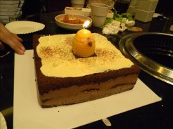 网上团的。选的提拉米苏。拿到货的时候还是满兴奋的,虽然不大,但是挺沉的,重量保证了。蛋糕做的很漂亮,感觉比网上的图片还漂亮,包装也不同以往的那些蛋糕,盒子很有质感啊。因为是提拉米苏的吧,事前是经过低温处理的,所以拿到手上,蛋糕还是凉悠悠的。味道不错,不过吃多了,感觉很甜腻。再说下不好的。当时图片介绍有送刀、叉、盘,于是我们想当然的认为送的是图片上那可爱的小瓷盘。结果拿到手上的是普通的纸盘子。大象君对于这点很不满,认为是被欺骗了,不过我刚才又阅读了遍,当时只注明了送的是不锈钢叉同刀,至于盘子到没注明,所以有点小遗憾。另,刀就是那种吃披萨时的刀,还不错,可是上面有不明黑色物体,还不好洗...