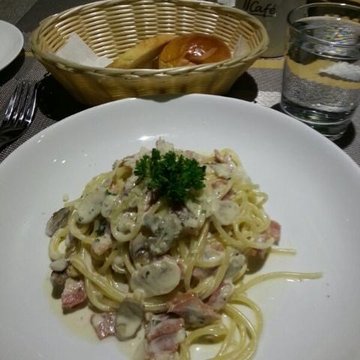 Colabo 这家店是朋友介绍过来的,这家店开在汾阳路上,这里交通非常方便。这家店面不大,但是店内环境优雅,非常适合情侣光顾。比较喜欢它家的芝士培根蘑菇意面,它家的面条很Q弹,里面的芝士很浓郁,搭配上炒制过的培根和蘑菇后味道鲜美可口,非常好吃。它家的量相对有些少,希望之后能有所改善。