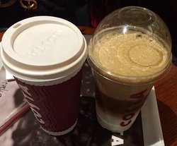 咖啡很有名的其实除了星巴克,还有costa、太平洋都很好,喝过好几次costa,并且都是在离家最近的朝阳大悦城喝的。坐地铁6号线到青年路出B口,可以直接穿到大悦城里面,不需要从地面过马路了,很方便。那次团购了一杯,选了摩卡,我当时就喝,所以店员给我装在他们店的瓷杯里面,是一个碗状的,大概15分钟左右就好了。我一个人拿着托盘,到屋外的一个桌椅坐下慢慢品味。看了看环境,很不错哦,里面店面不算大,不过还有室外哦,室外是很多的大伞,挺好看的都。咖啡做的很漂亮,上面还有一个咖啡豆的形状,杯子很大,以前打包过也,但是杯子比较小,可能当场喝的瓷杯大。另外兑换时候的店员态度很不错,验证慢的时候让顾客耐心等待等待,说话语气很好,而且很热情。查看更多