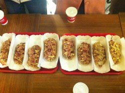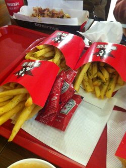 看到马拉西亚风味的热狗店时胃里的馋虫就勾出来了~马来西亚什么的很新鲜啊~于是今天吃完牛排后就和爸妈杀过去了~~(我的胃是有多大啊... ...)去的时候看到家长带着孩子去吃,快餐什么的永远都是孩子最喜欢的东西。因为之前有吃过东西所以三个人只团了个两人餐,一个猪霸芥一个牛蘑王,因为是全加福版所以有些辣~因为是三个人吃所以让服务员帮忙切开了一下,但是在吃的时候我发现我简直是一土鳖- -盒子底下明明有纸啊,我还拿手拿着吃,弄得油乎乎的,吃相丑到爆了--_,-- 猪霸芥上好像是有木鱼花,还有一些切成小片的培根?牛蘑王上面有肉馅,还有炒洋葱....啊啊啊啊啊啊啊!!!!!我最讨厌洋葱啦!!!!爸妈说洋葱对身体好什么的,于是这个就给老爸老妈消灭了。。不过里面的香肠我有吃,咬开可以看见断面处有肉粒,我实在是太坏了- - 薯条我喜欢,爸妈也喜欢,薯条上面有绿色的东西不知道是不是大家说的海苔。 给的饮料是听的,再也不怕兑水饮品了。。 看见有人拿这个跟赛百味比,不过确实没有可比性,赛百味真心凉飕飕,这个要温暖很多,但是这个我也是持着尝鲜的态度而已,不出意外应该不会去买了。。查看更多