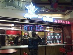 出去玩路上快速解决肚子问题的又一家快餐店。位于中街大悦城B座楼下,店面是开放式的,没有多少格挡,吃饭的时间也没多少人,很清静,但是正是因为人太少,冬天去觉得好冷啊= = 我们一次去了好多小伙伴,团购的单人和双人套餐,这家的热狗和薯条都是现做的,结果因为去了太多人,老板和工作人员们手忙脚乱的又验证又准备食物,真是辛苦了呢。我点的热狗叫牛魔王,顾名思义就是牛肉的,里面加了特制的酱料。对于不爱吃热狗什么的人来说,他家的味道还可以,但是也有所有快餐的通病,不够热……为什么不再加热一会这是为什么……薯条倒是很有特色,短短的胖胖的,炸的时候已经加了盐还是怎么的,吃起来有淡淡的咸味,配上番茄酱特别好吃,很喜欢,点赞点赞!饮料的话我要了红茶,他家的红茶也是茶包随便泡泡的,不好喝不过很暖和,一杯下去整个人觉得多少能暖和一点了XD,总之是适合赶时间选择的一家快餐店,下次有需要还会来的。查看更多