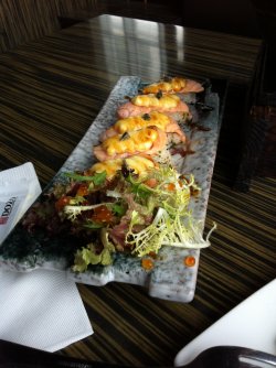 环境很不错~焦糖三文鱼点赞! 维果VC等級42013-11-1029 瀏覽 關注 环境真心不错~望出去一抹抹幽蓝高贵的光芒~某人请客,哈哈~离开地铁不是很远,在大楼里~走一会就到了~盯准了焦糖三文鱼寿司~长长一条端上来,赞~量超级大呀~半生不熟甜甜的三文鱼口感果然有被惊艳到~沾点芥末口味更无敌~不愧是它家的推荐必点单品~披萨猪排也很推荐哦~脆脆的猪排外裹着面包削~上面的芝士量刚刚好~可以拉丝的说~趁热咬一口下去,满口香脆,无比满足~因为盘子底下有一个过滤网,所以感觉不是特别油~推荐哟~某人还点了生牛肉~额。。吃了一片,木有什么腥味~不过实在吃不惯呐 梅子酒来上一杯,小酌一下也是爽口~总体感觉很不错,不过价格有点小贵~DP的会员卡可以打95折~…查看更多以上食評乃用戶個人意見 , 並不代表OpenRice之觀點。讚好分享环境很不错~焦糖三文鱼点赞! DOZO创作和食居酒屋 https://s.openrice.com/KtbT1003KC800檢舉 MISAKI鸣 焦糖三文鱼 = = 馋2013-11-11 回覆 張貼 評分4味道4環境4服務4衛生3抵食