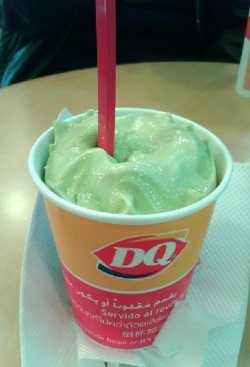 最近DQ正在搞半价活动,本来我只吃他家的抹茶杏仁和浓郁抹茶,现在从周一到周五都有指定产品半价,于是每个特价品种都去尝试了一下。兜南京路兜到晚上9点,想边吃冰激凌边回家,于是四处寻觅DQ,把353广场找了个遍,没有找到。最后转战宏伊,刚走下台阶远远就看到DQ了,心情那个澎湃!那天是周五,暴风雪系列里只有草莓香蕉特价,就买了这款。一吃之下,好心情完全被破坏,好难吃啊!!!感觉一股草莓香精味,里面夹了甜甜的香蕉,超难吃,还不如吃光明的冰砖。完全不是我的菜。事实证明,我比较适合抹茶,他家的抹茶粉很苦,味道很浓,而且杏仁之类的坚果又香又脆,口感很好。…查看更多