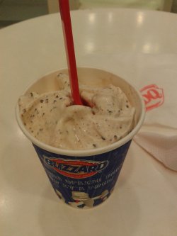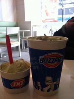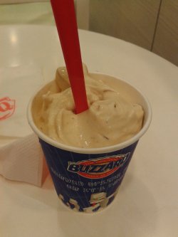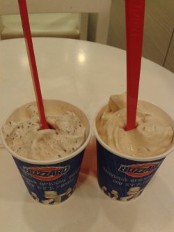 DQ的倒杯不洒很有名的噢~每次买都要倒过来一下的,很有劲的哈~~有活动的时候会买一送一,这个时候跟好朋友一起去,然后一人一杯,钞票平摊,很划算的呢!暴风雪系列的奥利奥加红豆很好吃,非常好吃啊~不腻,但是很解馋查看更多