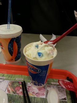 跟闺蜜三人逛街到附近,看到有家DQ,身为热爱甜食的资深吃货自然是不会放过!要了一份巧克力暴风雪,一份芝士奥利奥,一份绿茶暴风雪~暴风雪类的是他们家口碑比较好的,像绿茶暴风雪感觉就没有那么甜,多了绿茶的口感,很喜欢这种感觉~巧克力暴风雪就比较适合特别爱吃甜的人,吃多了稍稍有点小腻~芝士奥利奥感觉没什么特别,就是芝士加上奥利奥饼干,个人觉得芝士蛋糕相比之下更好吃,谁让芝士是大爱呢哈哈~不过总的来说DQ的冰激凌都是相当纯正滴,口感非常之浓郁香甜~查看更多