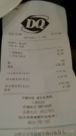 去西单逛街,逛累了就和朋友在DQ冰淇淋。第一次吃DQ冰淇淋,觉得真心有点贵,偶尔吃一次可以接受。现在买还有圣诞套餐呢 暴风雪 + 礼物 很超值喔 还有免费领会员卡活动人挺多的,喜欢的人可以去西单那逛街的时候,吃吃看。。味道有点太甜了,可能不太适合减肥的人哦!!O(∩_∩)O哈哈哈~查看更多