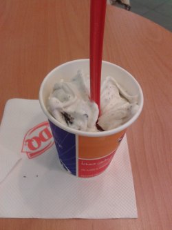 我还是比较钟爱DQ的暴风雪系列,尤其对奥利奥口味的情有独钟~奥利奥口味的冰激凌,它家算是做得最好的~奥利奥本身还带有一些饼干的感觉,而配上冰爽的冰激凌,甜脆中带有舒爽~冰激凌的整体口味蛮甜的~奶香味很浓,入口后浓浓的香味配合奥利奥的巧克力香味,很是美味~而回味中带有奶香,而且不是很腻口,还是比较爽口的~很喜欢~!查看更多