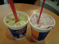 最近DQ在搞活动,20块钱买两个小杯的暴风雪,趁着优惠期间多杀过去吃几次。 第一次点了奥利奥和乌龙杏仁,奥利奥偏甜了点,我更喜欢乌龙杏仁,相对清新些的口感。 第二次点了抹茶杏仁和蓝莓杏仁。尝了一口朋友的蓝莓杏仁,觉得甜了些,还是更喜欢我一贯的最爱抹茶杏仁。抹茶微微一点的青涩味,喜欢。 以前还没过他们家暴风雪的蛋糕,一个小牛图案的,好可爱啊,口感也好,暴风雪冰淇淋,还有巧克力脆,吃得超爽啊。 优惠期间,争取再去两次,呵呵!查看更多