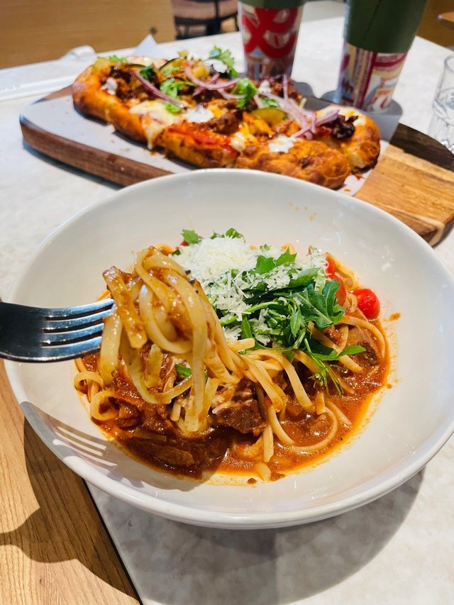輕食下午茶:下午茶¥59 包括一件蛋糕和一杯飲品。另外,見到主食賣相相當吸引🤩意式慢燉牛肉醬意面¥75牛肉粒多汁軟腍,牛肉慢燉製成醬,感受到滿滿的牛香!餐廳的手工意麵,入口煙韌彈牙,每一口都非常惹味!羅馬披薩¥88披薩加入了橄欖油、鹽和糖,外脆內軟,內裡口感似新鮮出爐的麵包一樣鬆軟!輕輕拉出芝士絲,豬肉配有濃郁的烤肉醬與奶香融合,香氣四溢!配菜有酸瓜、香菜、洋蔥,解膩開胃,讓人回味無窮。🍰栗栗綿綿蛋糕海綿蛋糕,鬆軟又有高質感,一層栗子蓉一層海綿,令人一口接一口!青蘋果芝士蛋糕檸檬味的青蘋果口味偏酸,帶來清新爽口的味道,讓人一試難忘!黑松露巴斯克口感綿密細滑,香濃黑松露味與芝士奶油高度融合,甜度合適。底部以香脆的合桃碎作餅底,令蛋糕更具層次感!gaga鮮果茶百香果青烏龍燕麥拿鐵…查看更多