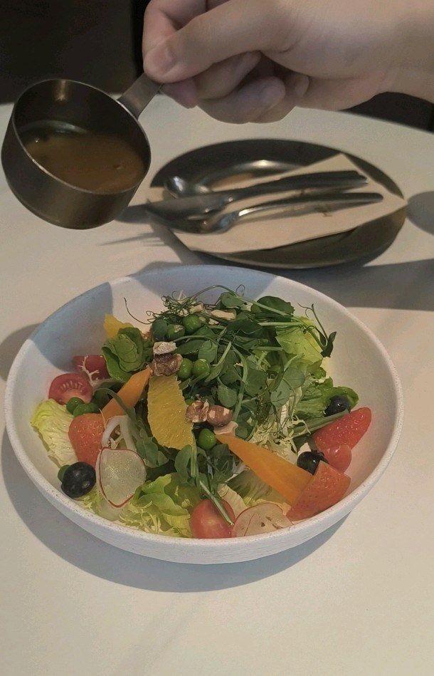 深圳一家非常有格調的西餐廳,氣氛浪漫💕👉「經典地中海雙人餐」¥498▪️▪️▪️▪️▪️▪️▪️▪️▪️▪️【時令蔬果沙拉】🥗酸酸甜甜的醬汁非常開胃,用料也非常豐富 🥬🍓🍊🫐 菜及多種生果:草莓﹑橙﹑藍莓﹑車厘茄,還有一些果仁。【和牛牛舌薄片x牛舌天婦羅】🐂👅第一次吃這樣的料理,牛舌天婦羅切成粒狀放在薄薄的牛舌片上,再加上松露醬,口感非常特別。😋【炭烤黃魚】🐟一整條黃魚,肉質嫩滑,魚皮烤得脆脆的,當中有少少骨刺,要小心咀嚼。🫦【炭烤澳洲M3牛腩排】🥩點了七成熟,這個熟度剛剛好。💦牛排烤得非常出色,完全鎖住肉汁,濃郁牛肉味。🧄不得不讚的是他的配菜,那個烤蒜頭非常軟熟,蒜香惹味。😍【餅皮焗烤黑松露奶油通心粉】🫓用酥皮烤出來的通心粉,侍應會在你面前剪開酥皮,再添加大量芝士🧀🫕通心粉味道非常香濃,內有各種菌類,視覺及味覺也滿足到。🤗【經典提拉米蘇】🍰 提拉米蘇不錯,帶有酒香與咖啡香☕ 濕潤的芝士口感細膩,作為飯後甜品也不覺肥膩 🥳【智利伊拉蘇1870赤霞珠干紅】🍷紅酒普通質素,葡萄味不夠,有少少苦澀味,不太建議點 🫢【覆盆子烏龍】😖味道太酸,喝不了兩口,下次可以試試其他飲料。❌完!…查看更多