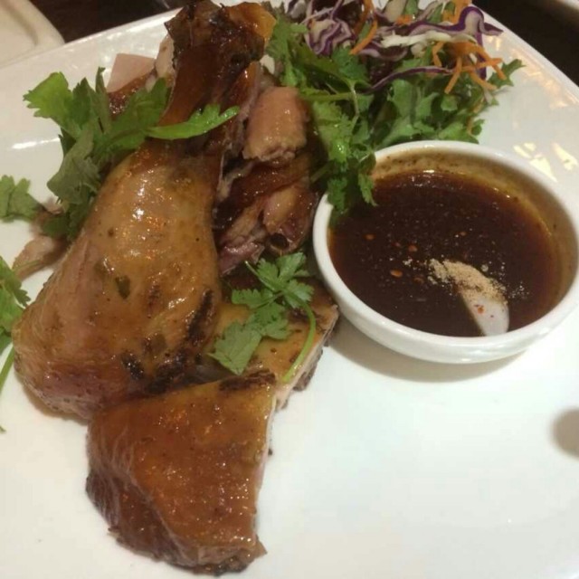 地方不是很好找的一家店,但是绝对是赞赞的!人气很旺,要等位。光线是暗沉沉的,店里很干净,环境很棒,很优雅。绿咖喱鸡很好吃,特别是咖喱,味道很浓,不辣,鸡肉很嫩。青木瓜色拉很爽口很好吃。烤鸡味道也不错,皮很脆很嫩。冬阴功汤很赞,里面的虾都很新鲜,还有鱼丸什么。性价比很高,椰奶布丁有点小,但是很好吃,滑滑的。