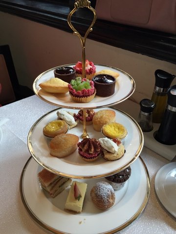 被shanghai WOW!评为最佳小资露台又是上海小资美食推出的2014甜品季五折优惠商户ll Bambino 班比诺意大利餐厅 就是你了坐落于热闹的田子坊内 靠近后门建国中路独栋的小洋房餐厅 一楼的小花园 顶楼的露台 老式的复古弯道楼梯 构成了这家小西餐厅原价168元/套的三层双人下午茶 现在只要84元/套心动不如行动 早早的预约了下午茶时间一进门 就发现操作台堆满了小西点 看来是早早准备好的把我们带到了3楼的靠窗坐 有一丝阳光撒入 氛围挺好套餐内容包括两份咖啡或茶&三层下午茶西点拼选了 玫瑰果茶&锡兰红茶 袋泡茶 喝完可加水三层的内容包含:巧克力纸杯蛋糕 英式松饼 葡式蛋挞 时令水果塔 迷你巧克力塔 提拉米苏 树莓金融家蛋糕 曼德琳蛋糕 手指三明治 法式泡芙 芝士蛋糕 每款西点两份 还是挺给力的