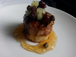 这里的三文鱼很厚实,第一次吃到那么厚实的三文鱼还能烧的那么嫩,不愧是大厨。三文鱼的味道很清淡,有点微微的奶味,而且鱼肉非常嫩滑,三文鱼上面的配菜也很赞,一点都没有喧宾夺主的感觉,很清淡。查看更多