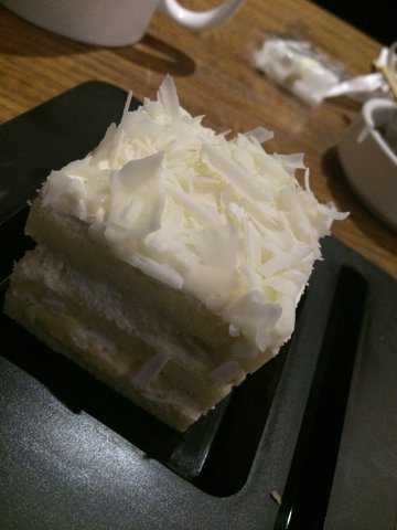 在微信上面玩儿朋友推荐的游戏居然得了一块蛋糕接100个榴莲就有一个蛋糕分享装还是免费送到家哦于是收到了之后就带家里的小朋友一起去咖啡店喝咖啡的时候顺便就吃了打开之后一股很浓的榴莲味道虽然是小小的一块蛋糕外面蒙着一片塑料纸一点儿都没有坏颜色超级漂亮上面还有白巧克力用送的特制小勺子挖开吃吃蛋糕很软配上香浓的咖啡浓浓的榴莲味儿加上很多软软的榴莲果肉超级好吃!!!啊啊啊啊 于是果断又去官网订购了一款榴莲飘飘也不贵 一百多