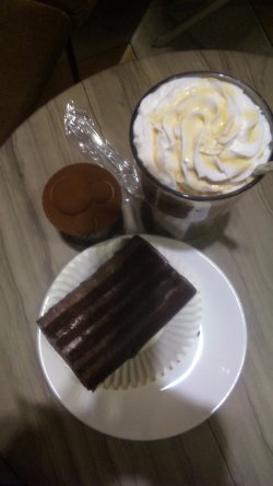 这家店的环境还不错,就是地方台小了点,他们家的甜品是以巧克力为主打特色的,既然如此当然是要买份巧克力蛋糕尝尝啦。他们家的巧克力蛋糕味道蛮甜的,涂的厚厚的一层巧克力酱,实在是蛮实在的但有点太腻人了,吃多了受不了。查看更多