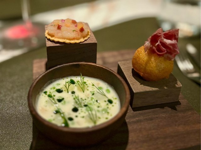 Have always liked Ecriture, so when informed that there was gonna be a 9am meeting in Shenzhen, decided to try out Chef Maxime’s venture in Shenzhen the night before.Wine list was ok. Went for a glass of burgundy red which was more chilled than a glass of white. Ermmmm.Felt sorry for VeggieGal, who was told the only dish available to her was a tomato tartare. The rest of us decided on the 8-course WINTER SEASONAL MENU @RMB 1,088pp.Here’s what we had. Bread basket: truffle brioche and sour dough. Canapé trio:-Sweet prawn with plum on cracker, a delicate and sweet/savory start-Potatoes and clam in cream sauce -Beignet (deep-fried pastry) with nutty Sunchoke filling topped with hamPieces of yellowtail, daikon and Persimmon served in a Citrus cream sauce. Could hardly taste the persimmon (which I normally love). Altogether a bland combination of flavors.Uni served with tender Cuttlefish and subtly crunchy wafer-thin Cauliflower pieces.Pigeon prepared 3 ways: BBQed breast served on cracker, confit leg with liver, and a comforting broth with mitake mushrooms. Scallop lined with mushroom and spinach encased in pastry. 4 types of sauces: parsnip puree, black garlic, lemon, and Tempeh (fermented soy with an earthy, nutty flavor and a slightly bitter undertone). Tasted much better than expected, lovely balance of flavors.Charcoal Grilled Wagyu Beef, Beef Bourguignon tartlet with Pearl Onion, topped with caviar.-oops no photo for this- Strawberry pieces and Tomato sorbet with Basil sauce. Must be the trend these days- have come across this various times already in other restaurants. Chocolate cake served with Cherry sorbet. A classic pairing, regrettably have never been a fan of Black Forest.Petit Fours (taste-wise, a disappoint conclusion to our meal):-Persimmon eclair -Red sugar Madeline-custard tart-Black plum MacaronIn summary: refined and understated dining journey centered around seasonal ingredients. The tasting menu suggested a restaurant striving for culinary excellence and innovation; yet we were not impressed- dishes lacked the wow factor or gastronomic complexity- with the exception of the scallop in pastry. Price point was much higher than expected (all this yapping abt how cheap Shenzhen restaurants are obviously didn’t apply in this case.) Or maybe we set our bar too high; or maybe it was the cold red wine, or the language barrier that undermined our experience. (Shame on me for not perfecting my Mandarin….)…查看更多