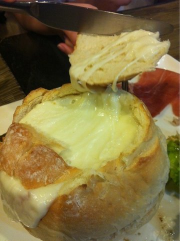 有一段时间火到不行,微信都快要被它刷屏了,地址在仙乐斯广场1楼109室,找起来不是很方便,门口有个帅帅的老外迎宾,服务员都很热情。就是冲着【芝士汉堡】来的,刚看菜单就第一个选了这个,造型很有意思,像是短粗法棍的感觉,中间是空的,上边开了一个盖,有满满的芝士,揭开盖子就有很棒的拉丝的感觉出来,配菜有烤土豆和肉丸子,和芝士都特别搭,尤其肉丸很好吃,但是一定要趁热吃下去,冷掉了口感就会大打折扣。【奶油蘑菇浓汤】偏清淡,奶油的甜度刚刚好,不会遮盖住蘑菇的香味。【热巧遇见香冰】就是热巧和香草冰淇淋,冷热的对比很棒,味道都不错。