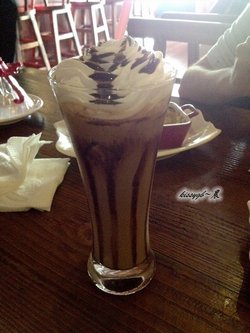 很早就看到过这家在微博上的宣传了,不过久久没能探店的说。直到有一次去恒隆才发现原来就在恒隆侧面这条路路口的位置,借着点评年会下午茶券的机会,果断除草。地址指引:滨江道109号。走到津塔入口处基本上就可以看到这家店了,斜对面20路公交总站的位置,路口即是。如果在大铜钱的位置,直接往麦当劳的方向走到头就是啦。提前预约了下,店员告之2点半到5点期间直接过去就欧克啦。从一楼超市进去,楼梯有点狭窄,三楼小清新区域没有开放,就坐在二楼了。氛围更像酒吧,很轻松随意的感觉,有圆桌区域适合多人聚会。还有柜台是售卖各种文玩饰品的,另外店内悬挂的各种木雕同样是出售的,价格不菲。焦糖拿铁,35米。小伙伴点的,端上桌就是浓郁的焦糖香气,甜甜的,让人迫不及待想要品尝呢。拉花做的很美腻,泡沫层很浓厚的样纸,杯子也很大,份量足的咖啡才是好咖啡,据说味道还不错,就是温度上稍低了些。白巧克力摩卡,35米。冒冒的菜,看起来就很带感有木有,哇咔咔。不过因为温度的问题,奶油花很快就会塌下去,要拍照一定要稳准狠啊。巧克力味道浓郁,咖啡味相应的淡了些,喝到嘴巴里是浓郁的巧克力酱和奶油的味道,很温暖,口感偏甜了些。说是咖啡,不如说成是一杯冬日的饮品。国王蛋糕,因为甜品是有限定的,本来想选择布朗尼,结果单子上是木有的。看名字很霸气就选择了这款,应该是冰镇过的,蛋糕底部冰冰的口感。表层的焦糖杏仁层很甜美,杏仁片特别有韧劲儿,嚼开之后满口都是坚果的味道,蛋糕的夹层有淡淡的芝士口味,很清甜,不会腻,配咖啡刚刚好。地理位置很好的一家小店,服务生对产品了解不够,有待加强哦。逛恒隆时想避免人多排队的情况,不妨来这边歇歇脚。…查看更多