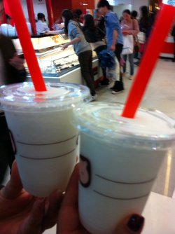 我是团购来的啦~两份酸奶冰~原本以为是两个原味酸奶了,原来是酸奶冰沙的说~买的时候还挺热的,所以放了一会就花开来啦~蛮好喝的有点像超市里面卖的优酸乳,那种感觉~再说说这里的酸奶哦。是那种老酸奶的味道,很厚的,挺酸的,酸里带了点甜查看更多